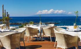Situé au pied de la célèbre plage El Bobo, à Costa Adeje, L'hôtel H10 Gran Tinerfe dispose un restaurant avec une vaste terrasse pour profiter midi et soir de repas en plein air.