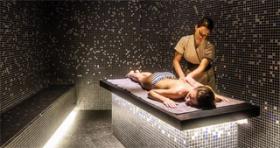 Accès au parcours marin : piscine d'eau de mer chauffée à 32°C comprenant jacuzzi, aquabeds, jets sous-marin, pedijets, colonne de marche à contre courant, lame d'eau "cobra"
