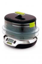 Cuiseur vapeur d'une capacité 10.3 litres - Nombre de bols 3 - Couleur Noir/chrome - Fonctions spéciales Vitamine+, fonction maintien au chaud, système de stockage par empilement - Affichage Écran LCD - Fonctions du minuteur: Départ différé - Accessoires inclus 2 x Plateau vapeur, 4 x Récipient, 1 x livre de recettes - Puissance 1800 W - Dimensions: 33.3 x 22 x 27 cm