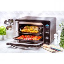 Noir et finitions en chrome sur les boutons et poignée, pour une intégration parfaite dans les cuisines modernes. - 3 modes de cuisson : Chaleur tournante 2200W, Chaleur conventionnelle 2200W, Gril 1200W - Un gril composé de résistances en quartz pour apporter de la croustillance à vos plats - Thermostat mécanique jusqu'à 240° C - Minuterie digitale 180 minutes - Accessoire : plat à four et grille réversible - Sécurité et isolation grâce à la porte triple paroi - Capacité 39 Litres - L. 65 cm x l. 48 cm x H. 45 cm