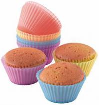 12 moules en silicone pour Cupcakes ou muffins, - cuisson sans graisse au four ou micro-ondes, - lavable au lave vaisselle, - empilables pour rangement, - très souples pour un démoulage facile, - résistants de -40° à + 230°