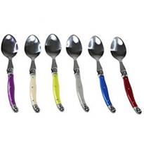 Set de 6 cuillères à dessert de table Laguiole multicolores en coffret cadeau avec boîte VPC transparente et bandeau Laguiole