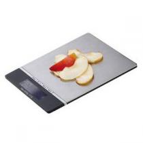 Balance électronique métal - Capacité 5 Kg - Graduation 1 g - Unité: gramme/kilogramme - Thermomètre - Horloge - Mise en veille automatique - Indication de surcharge et de l'état des piles - Piles : 3 x LR3 - Dimensions 23 x 16 x 1,7 cm