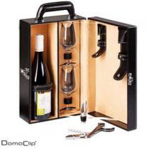 Coffret sommelier luxe, finition sellier - Pour une bouteille - Un tire-bouchon - 2 verres à vin - Un bec verseur - Dimensions 35,7 x 21,7 x 12 cm - (livré sans bouteille)