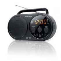 Radio PLL FM/MW - Fonctions radio réveil - Afficheur LED Ambre Connexions : - Port USB - Entrée auxiliaire Radio : - Présélections de stations : 20 - Radio FM PLL - Antenne FM téléscopique - Recherche des stations Alimentation : - Piles : 4 piles 1,5V de type C/R14/UM2 (non fournies) - Secteur : 230V - 50Hz Affichage : - Afficheur : LED ambre - Dimmer (réglage de la luminosité) Heure : - Répétition d'alarme - Double alarme - Réveil par radio ou alarme - Fonction sieste Dimensions : 12 x 8.3 x 2.3 cm