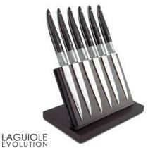 6 couteaux steak Laguiole Evolution avec bloc aimanté - Bloc aimanté noir incliné - Acier inox trempé 13% - Mitre / manche forgés - Mitre massive pleine soie - Manche POM Conseil d'utilisation : huiler la surface aimantée avant de mettre les couteaux.