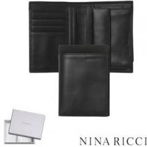 Couleur : noir - Dimensions : 11.5 x 2.5 x 9.5 cm - Matière extérieure : cuir - Matière intérieure : doublure polyester - 1 compartiment porte monnaie - 1 compartiment à billets - 8 emplacements cartes de crédits - Griffe Nina Ricci embossée sur le porte cartes intérieur