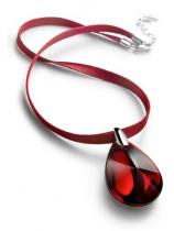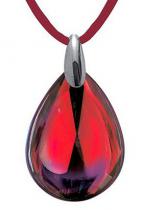 Pendentif en cristal rubis irisé et bélière argent 925/1000 - Longueur du cordon : 38 cm - Dimension du pendentif : 4,5 x 2,7 cm