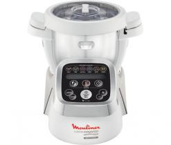 Il cuit, mijote, cuit à la vapeur, rissole, mélange, pétrit, ...sans besoin de surveiller la préparation. - 6 programmes, 5 sous-programmes et un mode manuel - Accessoires : panier vapeur de 2 litres, fouet, mélangeur, couteau ultra blade, couteau dentelé - 10 vitesses + 2 intermittentes - Capacité de 4,5 litres (correspond à une table de 6 personnes) - 1550 Watts - Dimensions L31 x P35 x H32 cm - Livré avec un livre de recettes (100 entrées, 100 plats et 100 desserts).