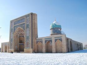 • la place Khast-i-Imam, le centre religieux de Tachkent avec ses la madrasa et le mausolée Barak Khan, le mausolée d’al-Kaffal Shashi, la mosquée du Vendredi et la madrasa Moyie Mubarek qui abrite son ancien Coran d’Ousman.