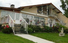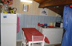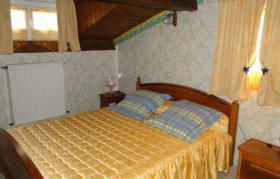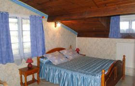 2 chambres mansardées (ht : 1,40/2,50) à l'étage de la maison des propriétaires, accés par escalier extérieur. Chambre 1 : lit 160, 1 lit enfant, salle de bain/wc, chambre 2 (en 2 parties) : 1 lit 160, canapé convertible (160), salle de bain, wc. Coin salon attenant, salle à manger et kitchenette réservés aux hôtes. Sur demande un lit enfant.