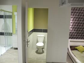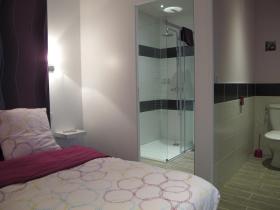 Nous avons mis à disposition dans les 2 chambres (la 14 et la 18), un lit spacieux (160 x 200) une salle de douche et un WC séparé. Dans la 3eme chambre "Léonie" qui se situe à l'étage, votre lit sera également de 160 x 200, et vous aurez à disposition une salle de douche et un WC, cette chambre est climatisée. Vous avez à disposition dans nos 3 chambres une télévision à écran plat et le wifi. Nous mettons à votre disposition un réfrigérateur et un micro-ondes. Nous pourrons vous préparer votre petit déjeuner.