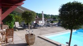 Les fenêtres du grand salon avec cheminée s'ouvrent sur la piscine, petit joyau bleu en terrasse, où de confortables bains de soleil vous attendent pour un moment de détente.