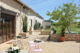 Caumont, petit village niché sur les coteaux, où cette maison d'hôtes en pierres dispose de tout le confort nécessaire pour un séjour paisible et romantique. Son jardin fleuri, sa piscine et ses deux terrasses vous offriront d'agréables moments de détente durant votre séjour. Notre maison d'hôtes propose quatre chambres d'hôtes très confortables, meublées et décorées avec soin, avec salles d'eau ou de bains et wc privés. Les petits déjeuners copieux seront servis dans une grande salle à manger avec cheminée. Un espace salon avec bibliothèque sera également à votre disposition. Une vue magnifique sur le vignoble depuis la terrasse. Wifi gratuit.