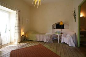 Dans les dépendances de l'ancienne cure du village, 3 chambres d'hôtes, dans un esprit d'artisanat d'art, chacune avec entrée indépendante. Salle de séjour, salon, bibliothèque. Cour fermée. Jardin avec balançoire, ping pong. Piscine chauffée et sécurisée de 5mx10m. Abri couvert. WIFI dans la salle commune. Frigo et micro-ondes à disposition.