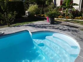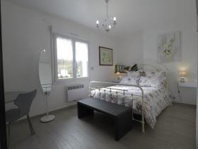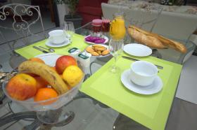 La chambre peut accueillir 2 personnes et un bébé et est située au rez-de-chaussée de la maison. Elle dispose de deux lits jumeaux, d'une télévision écran plat, d'un coin tisanerie (boulloire/café/thé/infusion), d'un espace lecture avec de nombreux livres, d'une salle d'eau avec spacieuse douche à l'italienne, d'un WC séparé. Petits déjeuners servis dans une véranda ouverte sur l'extérieur ou en terrasse selon la saison, un petit salon détente est également à disposition. De mai à septembre, accès à la piscine chauffée. Parking privatif et clos, jardin avec aménagements paysagers.