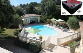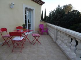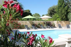 Environnement de village. Dans une demeure provençale, 5 chambres d'hôtes (3 en rdc et 2 à l'étage ) chacune équipée d'une douche à l'italienne, toilettes privées et TV. Terrain clos de 2200 m2, terrasse, piscine commune (10x5m) ouverte de mars à octobre, parking, garage pour vélos et motos. Balançoire, toboggan et table de ping-pong + vélo elliptique pour la remise en forme.