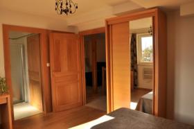 Deux chambres tout confort ainsi qu'un grand séjour indépendant. Situé au premier étage de l'ancien corps de ferme,entièrement rénové, il donne sur un grand balcon qui permet un accès direct au jardin.