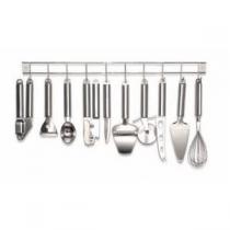 Support d'ustensiles métal 10 pces - 1 Barre de suspension et ses crochets metal - 1 Fouet - 1 Pelle a gateaux - 1 Couteau a fromage - 1 Roulette à pizza - 1 Couteau universel - 1 décapsuleur - 1 Ouvre boite - 1 Boule de glace - 1 Rasoir à légume - 1 râpe.