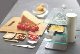 Colonne en thermodurcissable - Pied en métal laqué - 3 Plateaux fixes en verre trempé - Bouton marche / arrêt avec voyant lumineux - Cordon fixe - 2 Poêlons à raclette avec revetement antiadhésif - Puissance : 350 Watts Idée cadeau Maison et Confort - Petit électroménager