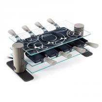 Colonne en thermodurcissable - Pied en métal laqué - 3 Plateaux fixes en verre trempé - Bouton marche / arrêt avec voyant lumineux - Cordon fixe - 8 Poêlons à raclette avec revetement antiadhésif - Puissance : 900 Watts Idée cadeau Maison et Confort - Petit électroménager