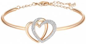 Un design chic de cœurs entrelacés, symbole d’amour éternel ! - Cristaux incolores sertis pavé raffinés et du métal doré rose féminin. - Le bracelet-jonc ovale mesure 5,9 x 4,5 cm. Idée cadeau Gamme Prestige - Stylos & bijoux