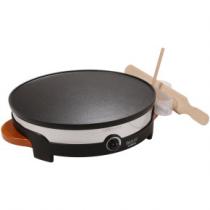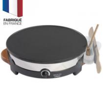Plaque amovible revêtue d'anti-adhésif en fonte d’aluminium - Socle en thermoplastique - Bandeau en inox - Cordon amovible de 2 m - Thermostat réglable - Puissance 1400 Watts - 1 plaque grande crêpe ø 35 cm - Support spatule avec rince répartiteur - Poignées en bois verni - 1 grande spatule et 1 répartiteur Idée cadeau Maison et Confort - Petit électroménager