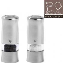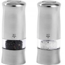 Ensemble de 2 moulins electriques sel et poivre. Après plus de 160 ans, le moulin Peugeot est toujours la Référence dans les cuisines des plus grands chefs. - Compact, il passe facilement de la cuisine à la table - Sa forme ergonomique et son revêtement au touché soft, autorisent une prise en main sure et parfaite - Le jeu entre sa couleur moderne et les reflets pièces brossées (base et bouton) lui donne une allure très tendance. - Hauteur : 14 cm Idée cadeau Maison et Confort - Arts de la table
