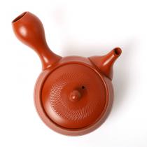 Véritable théière japonaise avec anse latérale, issue de Tokoname, idéale pour la préparation du thé vert japonais haut de gamme, élaborée en argile rouge naturelle, cuisson en oxydation, 340ml