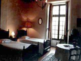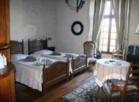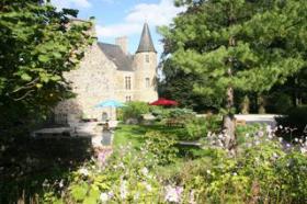 Au milieu des petits bois, cette bâtisse du XIIIe siècle a conservé sa chapelle et sa ferme. Emmitouflé d’hortensias et coiffé d'ardoises, elle a beaucoup de panache et de très jolies chambres avec, çà et là, un baldaquin ou un plafond à poutres.