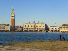 Deux des édifices les plus spectaculaires de Venise, la Basilique Saint Marc (Basilica di San Marco) et le Palais des Doges (Palazzo Ducale), se dressent l'un contre l'autre à l'est de l'esplanade San Marco. Avec ses riches mosaïques sur fond d'or et ses élégantes coupoles, la basilique offre le meilleur exemple de l'influence byzantine qu'a connue la ville. Le palais impressionne quant à lui tous ses visiteurs par sa débauche ostentatoire de richesses et de symboles de pouvoir.